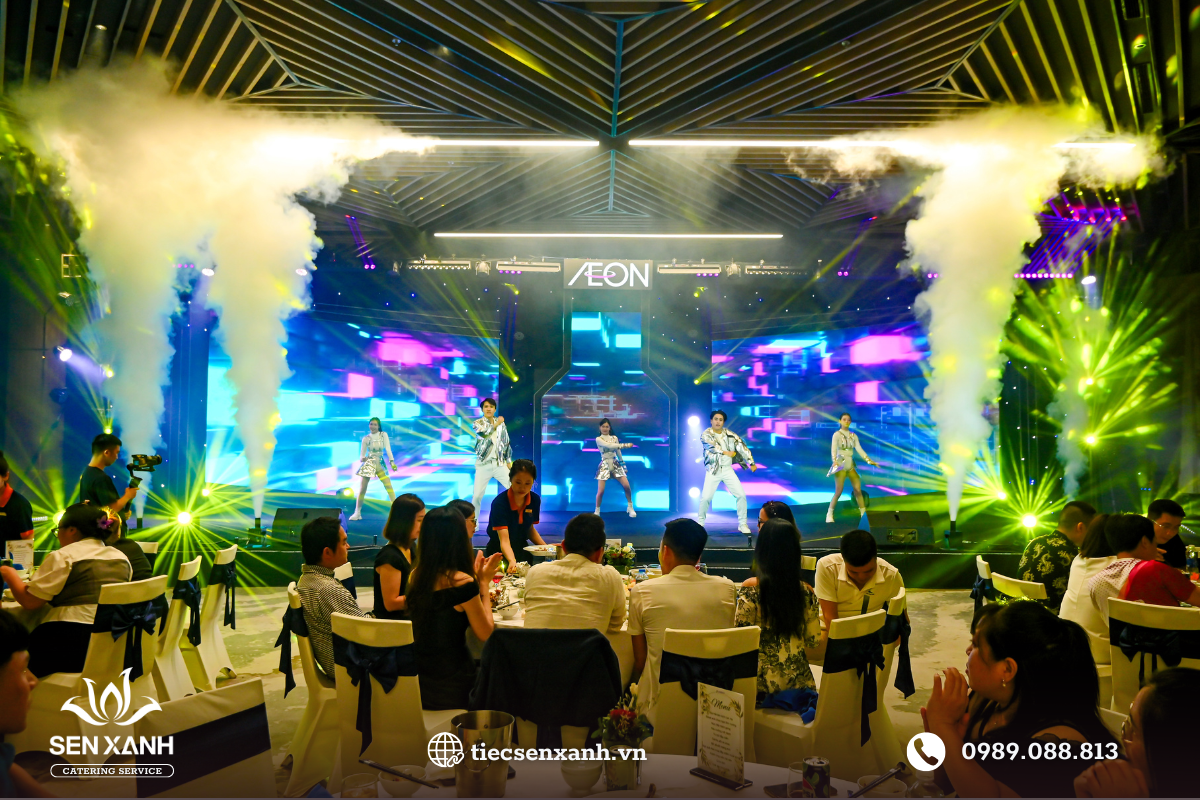 Đội ngũ nhân viên phục vụ đồng phục áo dài truyền thống, tác phong chuyên nghiệp, luôn túc trực hỗ trợ khách mời. Món ăn được refill liên tục, giữ trọn độ tươi ngon và thẩm mỹ. Đặc biệt, Tiệc Sen Xanh còn kết hợp phục vụ teabreak song song với các tiết mục biểu diễn nghệ thuật, tạo nên sự liền mạch, không gián đoạn trong trải nghiệm khách mời.